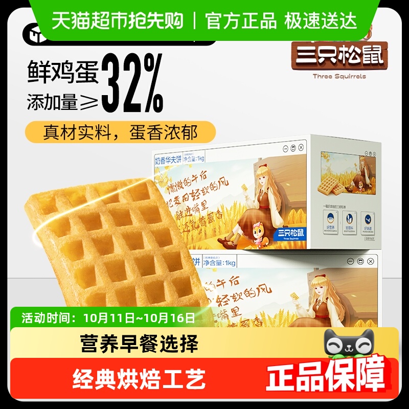 三只松鼠奶香黄油华夫饼代餐早餐糕点心面包网红休闲零食整箱