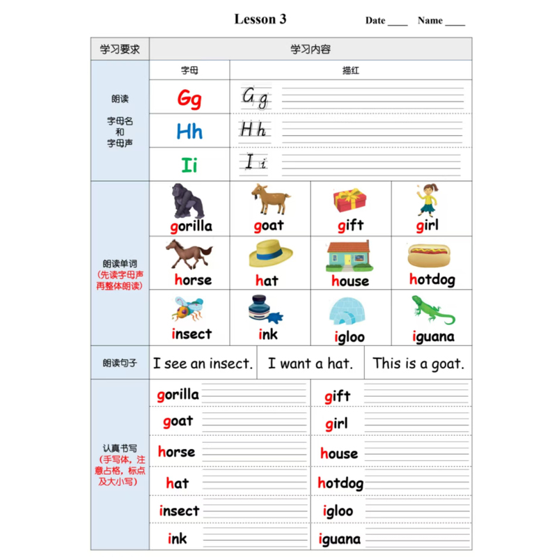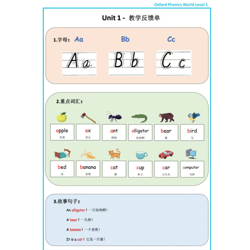牛津自然拼读1-5级作业单练习单知识总结测试单教学反馈单词英语