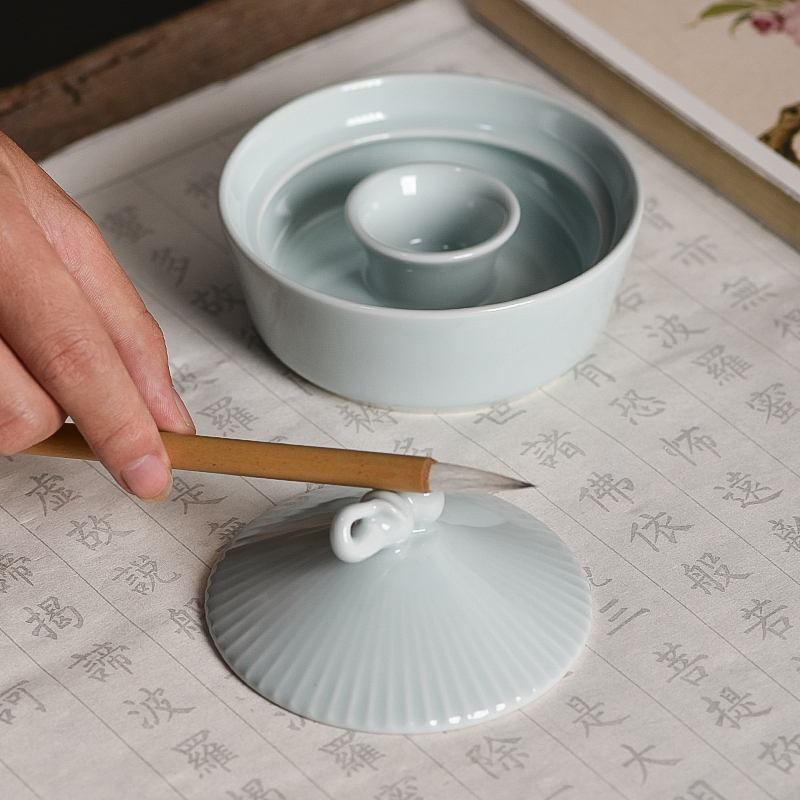 张小凤青瓷砚台书法国画专用毛笔墨汁砚台带盖不干墨墨盘小学生女生便携式高端精致掌中宝小楷文房四宝初学者