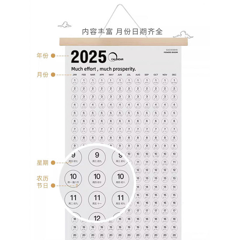 挂历2026蛇年新款全年一张纸元旦新年装饰挂墙日历家用创意计划表木架2027日历打卡吵架挂历简约ins风挂墙