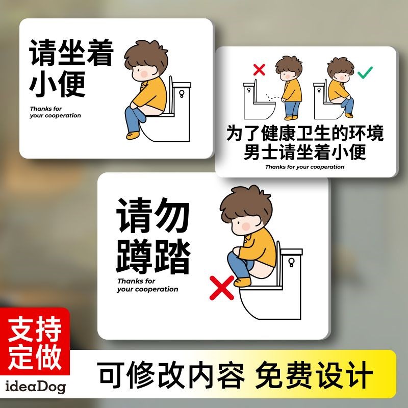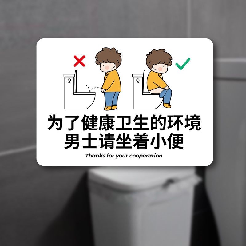 请坐着小便请勿蹲踏提示牌男士请坐着小便别站着尿尿厕所标识语