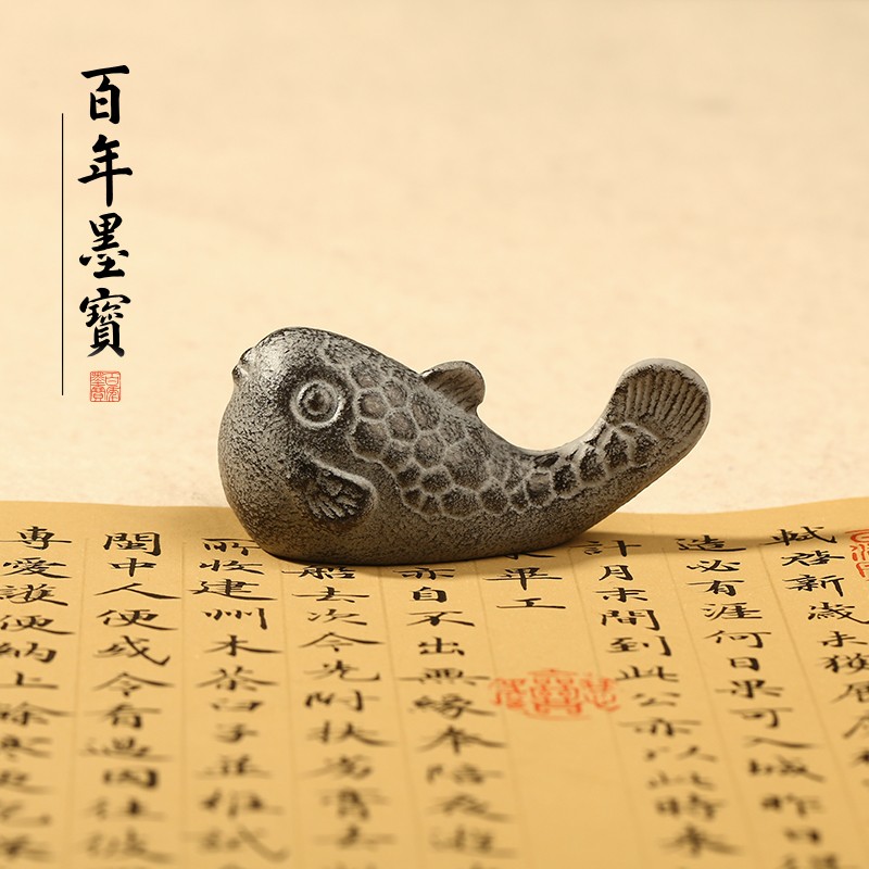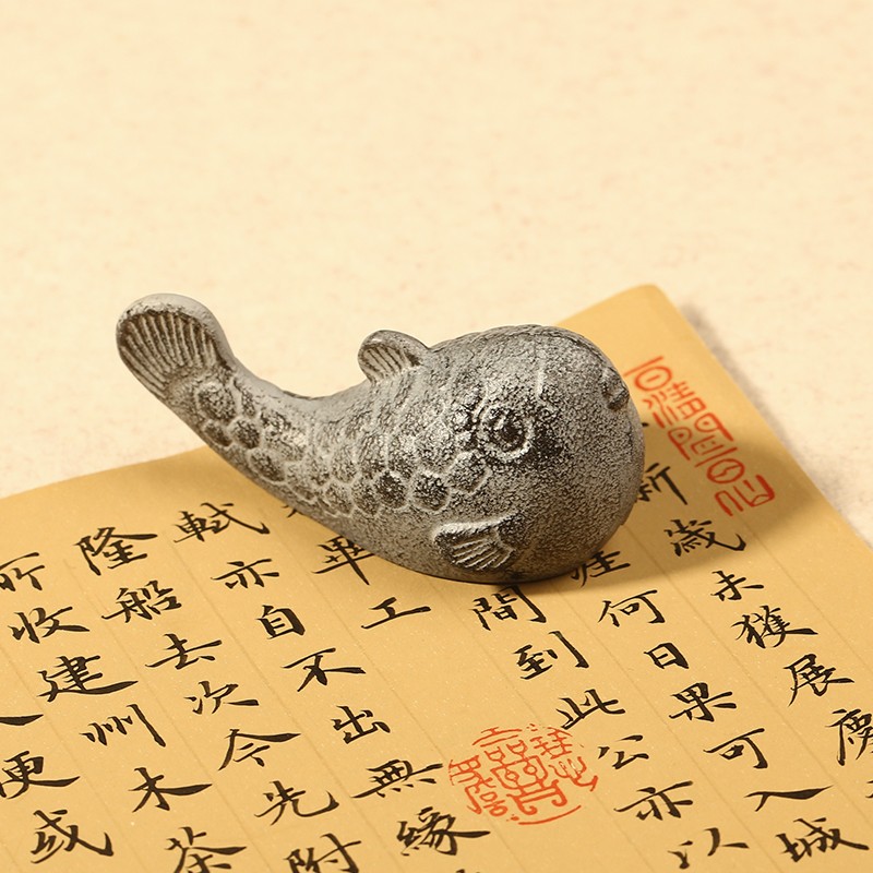 河豚铸铁镇尺镇纸学生 金属文房毛笔书法可爱小摆件复古寓意小巧