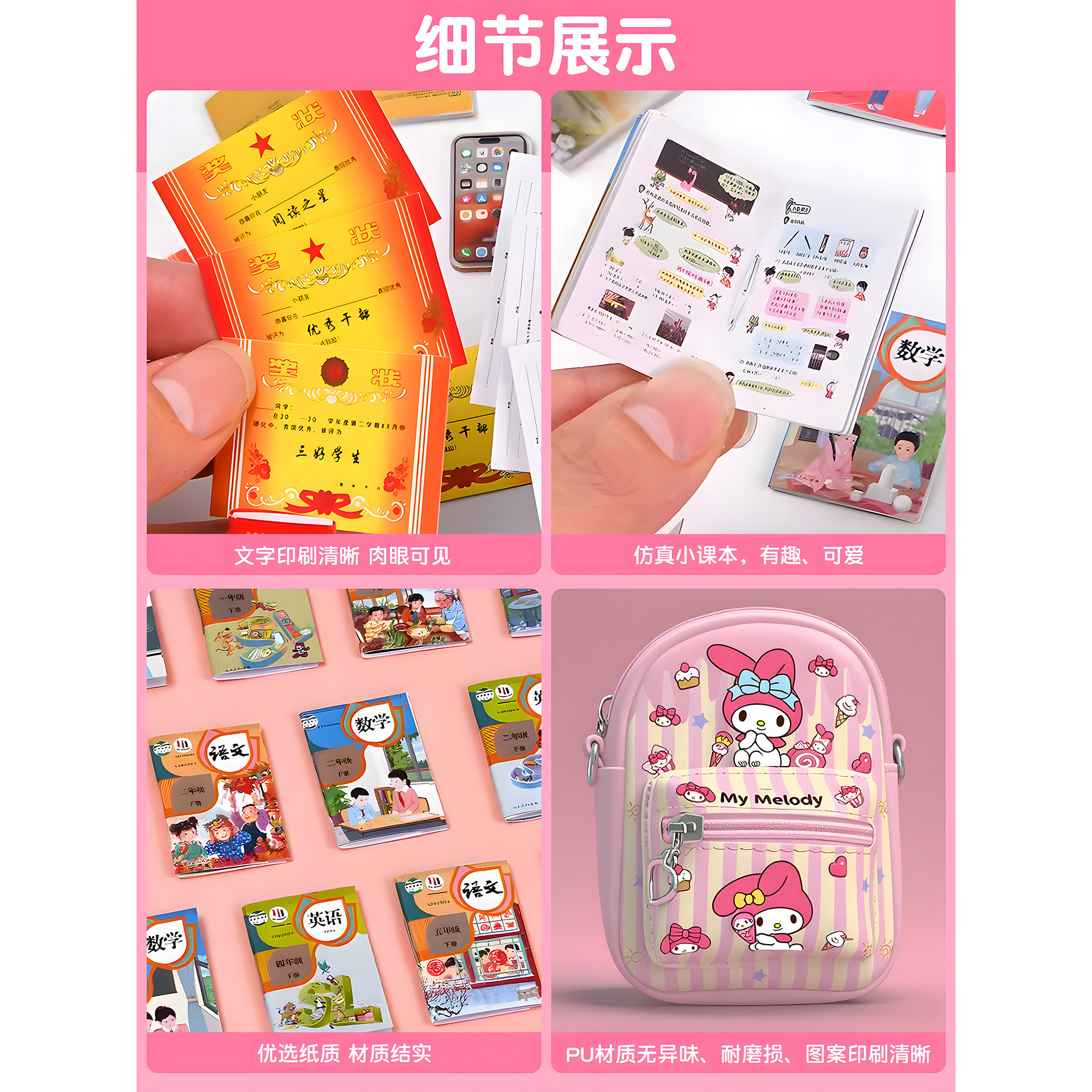 迷你小书包女孩过家家玩具套装小文具斜挎包仿真小书本全套礼盒