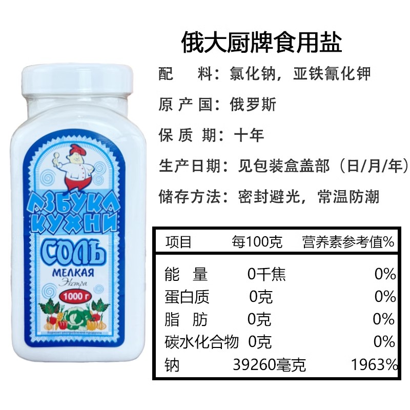 俄罗斯官方矿盐进口食盐原装不加碘无碘盐俄大厨食用盐俄罗斯盐
