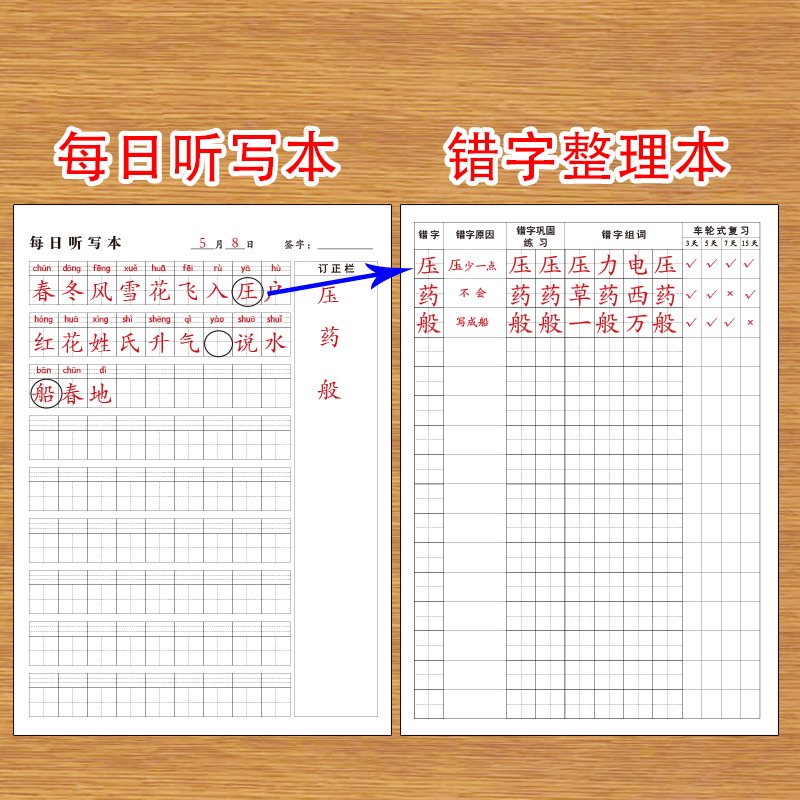 错字整理本小学生语文英语课文听写默写作业写话考试错字原因分析更正巩固记忆艾宾浩斯纠正高效整理本