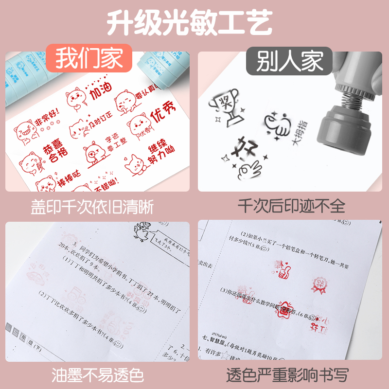 教师用评语印章表情小学生老师奖励用通用批改作业小学印张订正合格优秀光敏涂抹田字格多功能信息教学开学