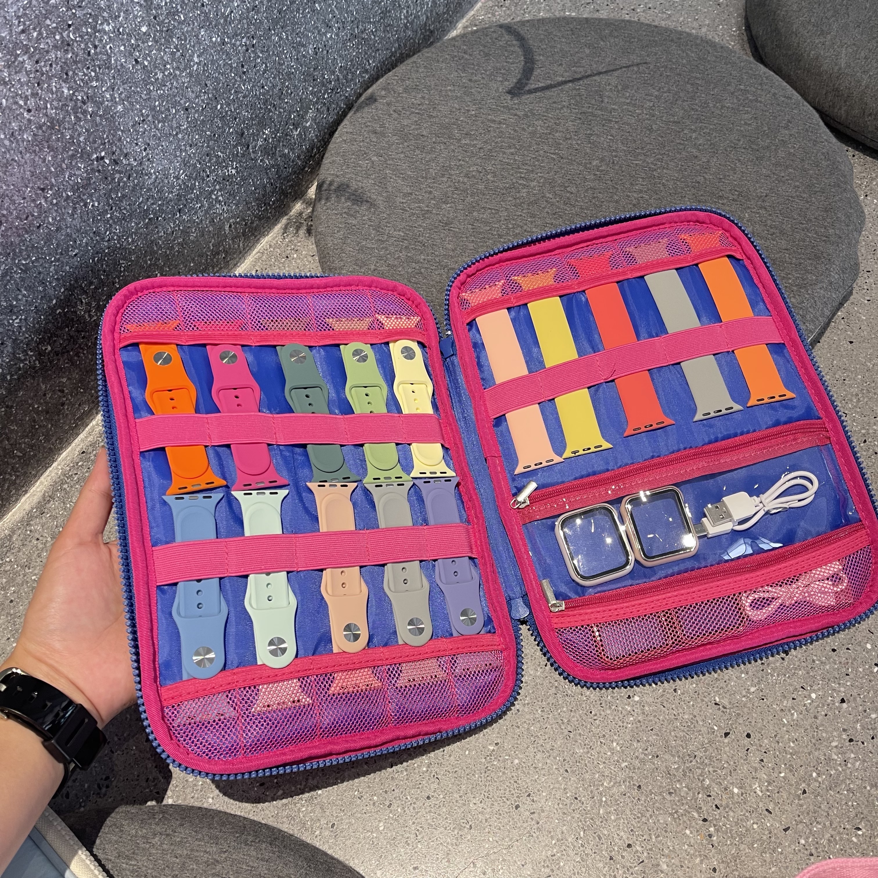 原创字母刺绣 软绵绵 多隔位 iwatch表带收纳包表壳数据线收纳包
