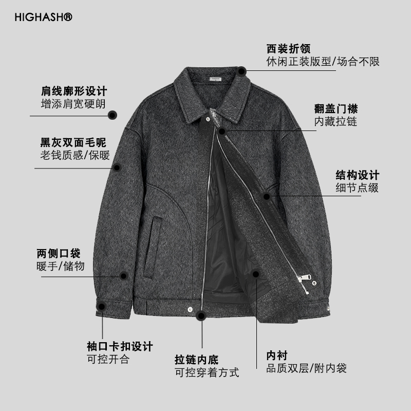 秋冬翻毛双面呢羊毛HIGHASH老钱风复古休闲正装夹克男款外套大衣