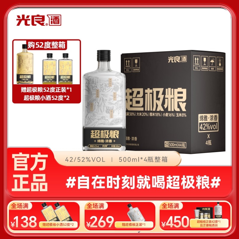 【官方正品】光良超极粮 42度浓香型白酒 纯粮酿造好酒500ml每瓶