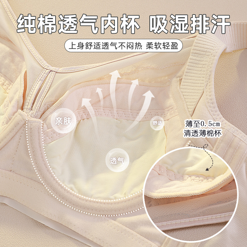 润微提拉女王内衣女夏薄款大胸显小无痕大码调整防下垂粉底液文胸