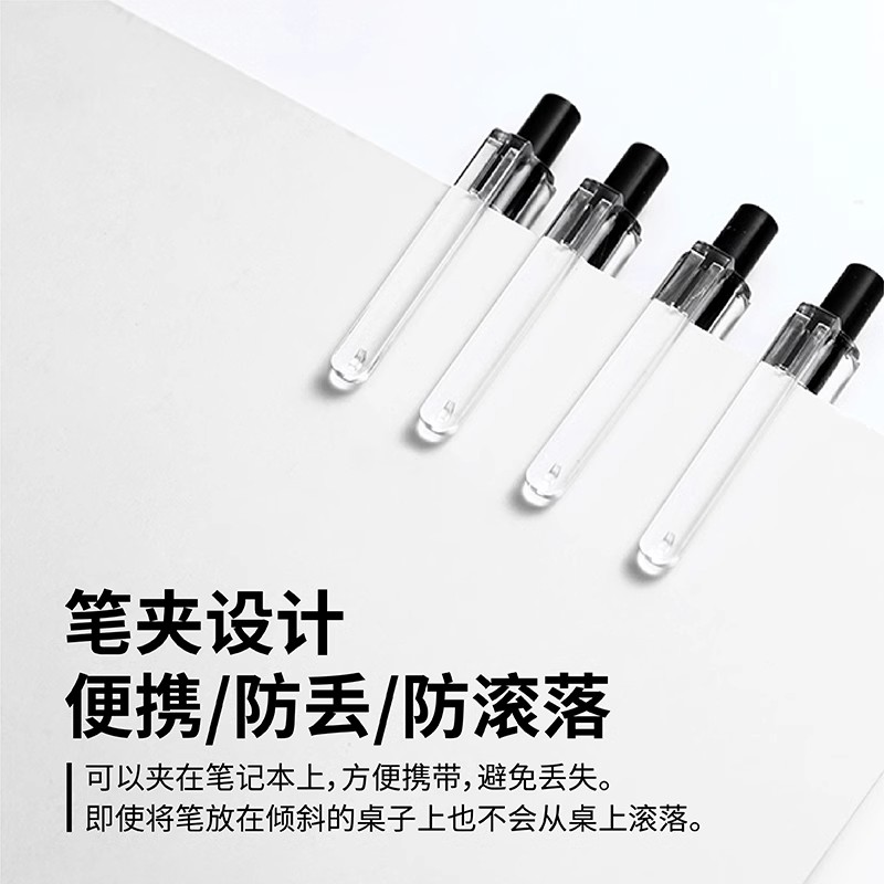 晨光按动中性笔0.5mm刷题笔速干ST头简约透明高颜值按压式笔顺滑不断墨学生日常书写备考考试黑色碳素笔