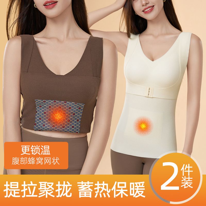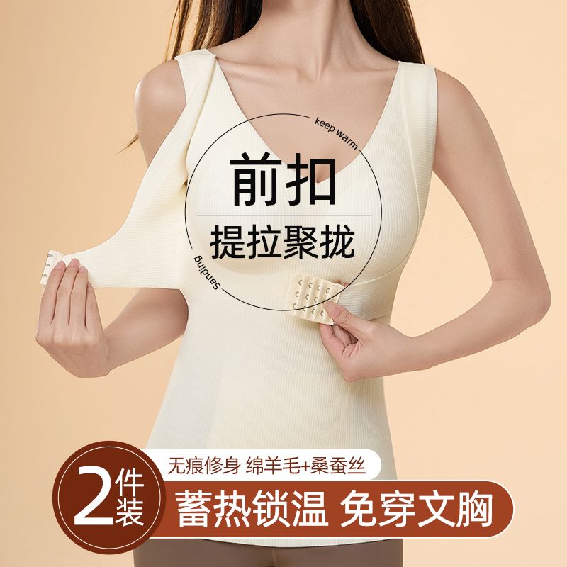 秋季前扣聚拢保暖背心女无钢圈文胸内衣提拉聚拢蓄热防下垂打底衣