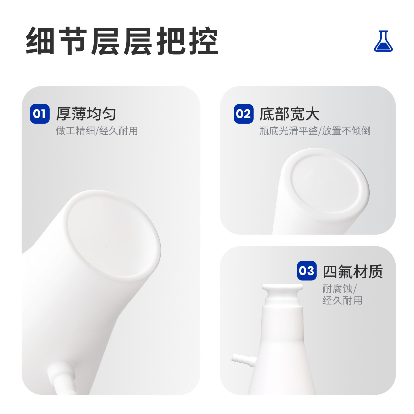 聚四氟乙烯抽滤瓶四氟上嘴过滤瓶三角抽滤瓶耐酸耐碱实验室专用250/500/1000m