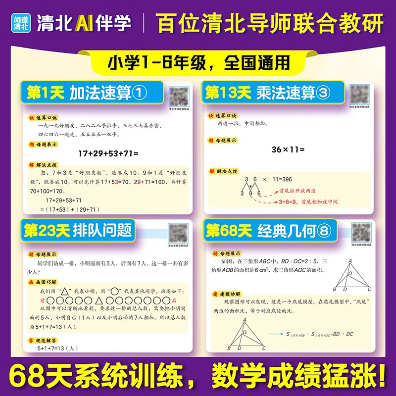 官方正版小学高分数学思维提升计划解题书籍68天系统训练计算技巧巧算速算方法总结一本通
