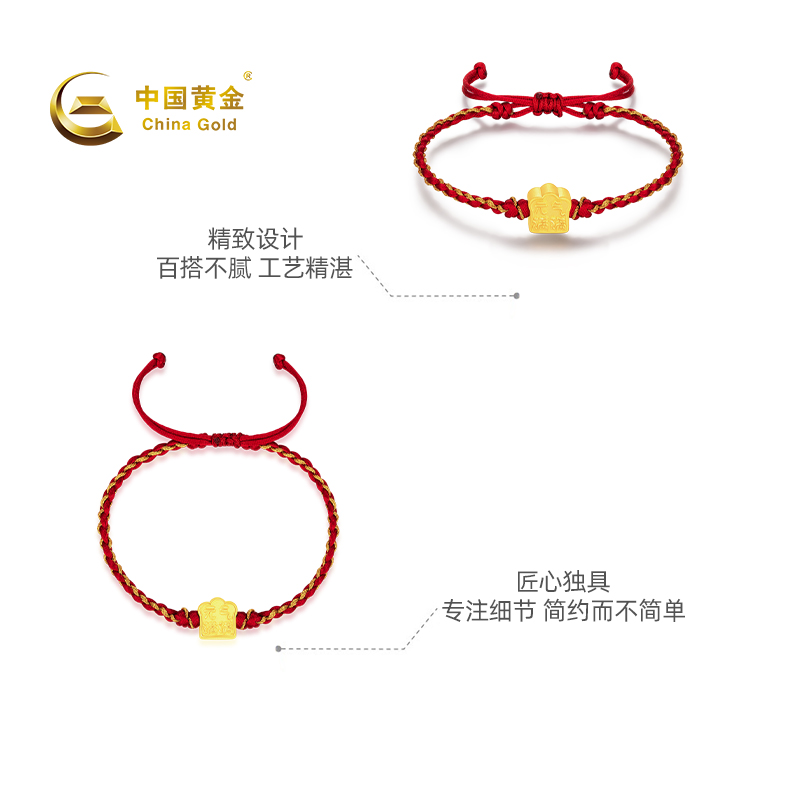 【中国黄金官方店】3D足金元气满满手串时尚简约气质饰品新品