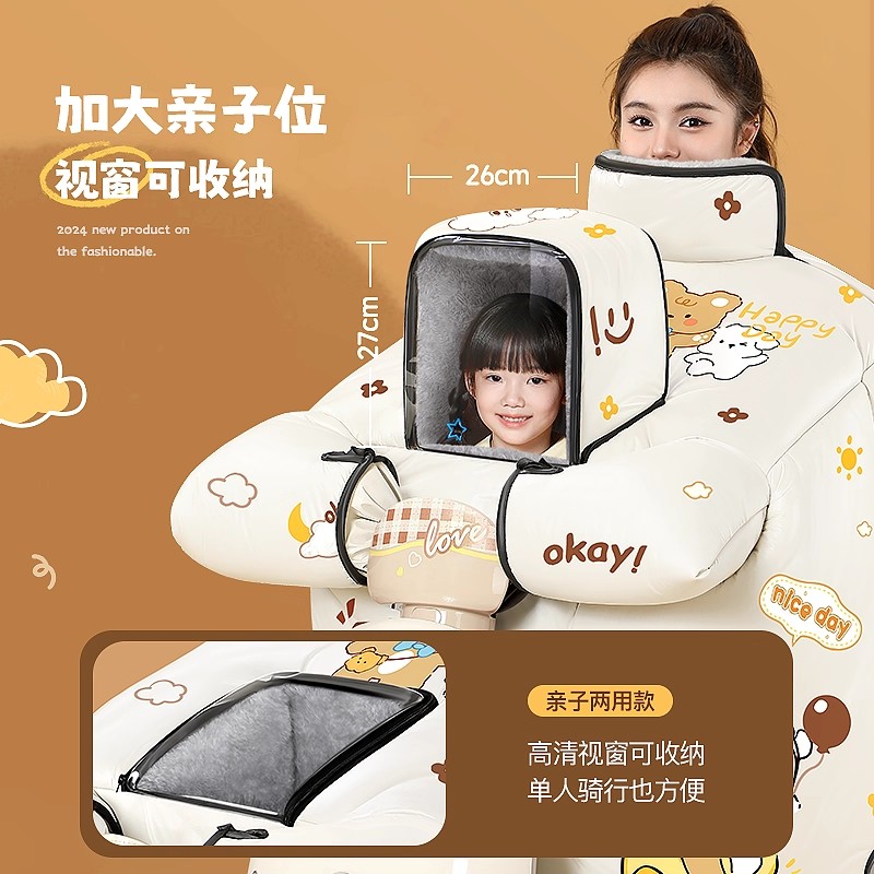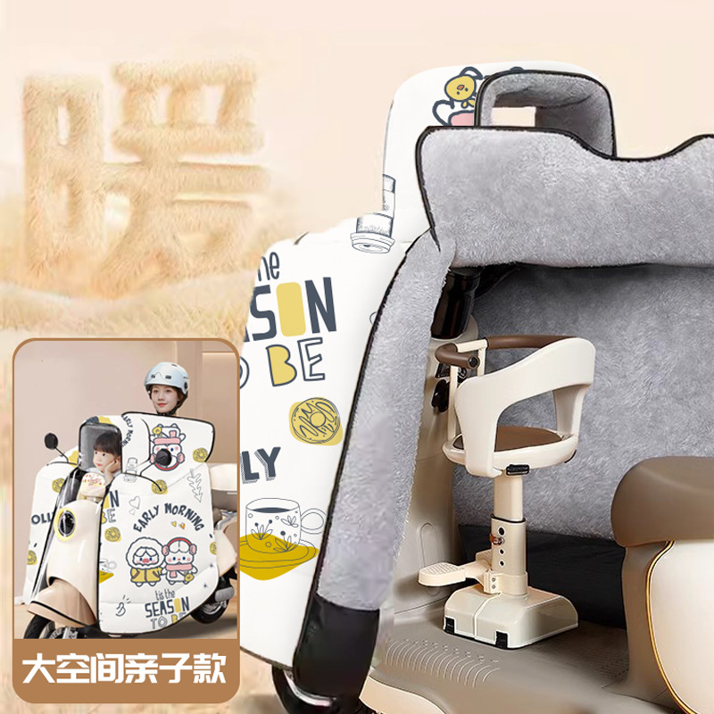 儿童亲子款电动车挡风被冬季加绒加厚春秋防风被子雨衣全包三轮车