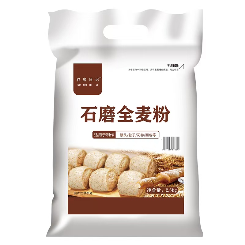 纯石磨全麦面粉无添加全麦粉5斤含麦麸农家现磨粗粮馒头包子烘焙