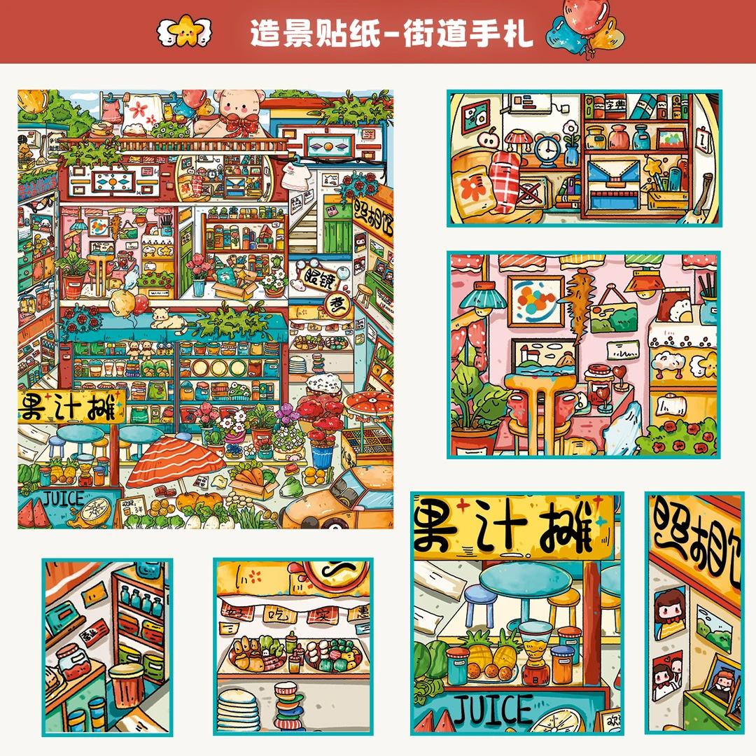 朝釉特油3.0系列造景贴纸商超街道手札筒子楼的童年微缩场景合集本大号儿童女孩玩具3D立体小屋贴画手工diy