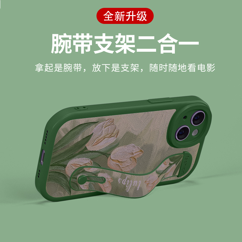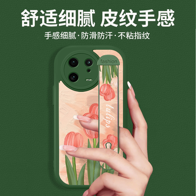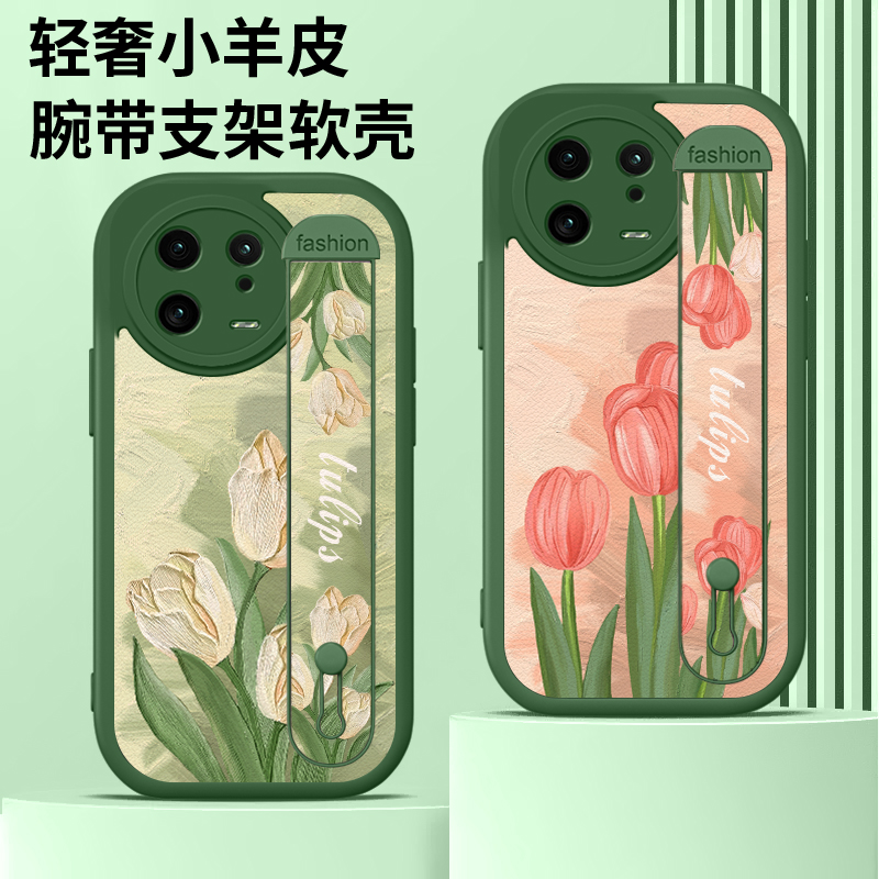 油画白郁金香适用于小米12pro手机壳13小羊皮新款11pro镜头全包Civi2小众摔10高级创意红米k60网红女腕带支架