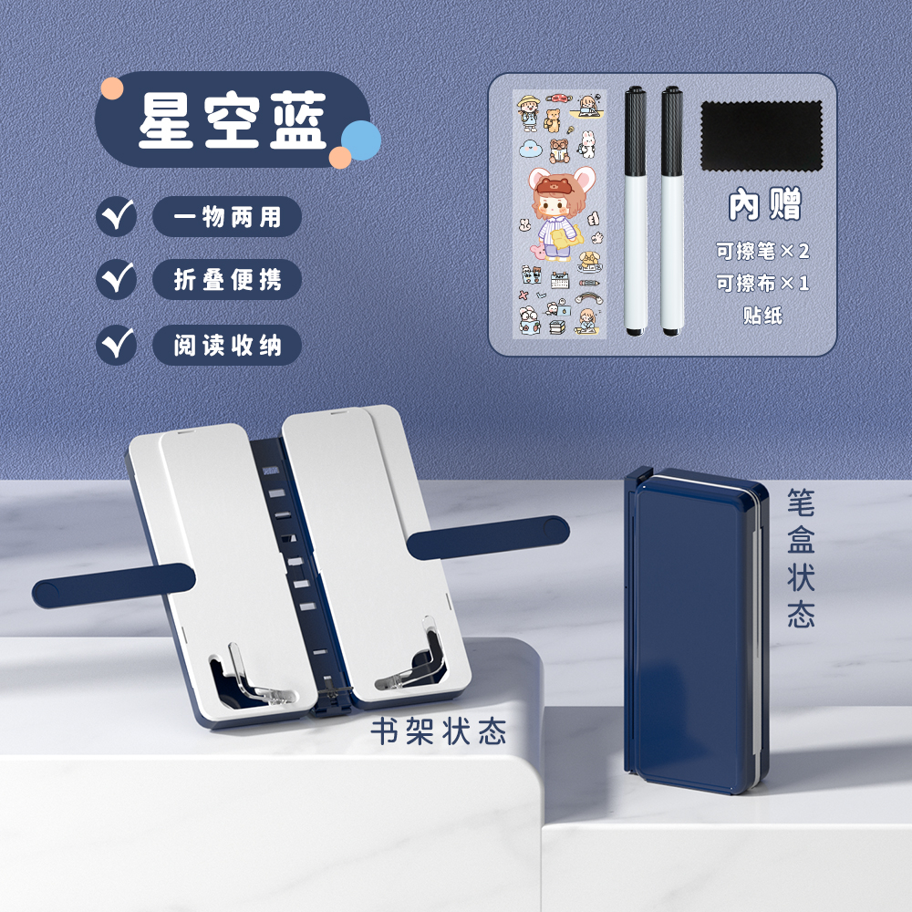NBX可折叠书立架笔盒简约可调节对开阅读架男女学生儿童笔盒多功能高颜值收纳盒便携看书支架大容量文具盒