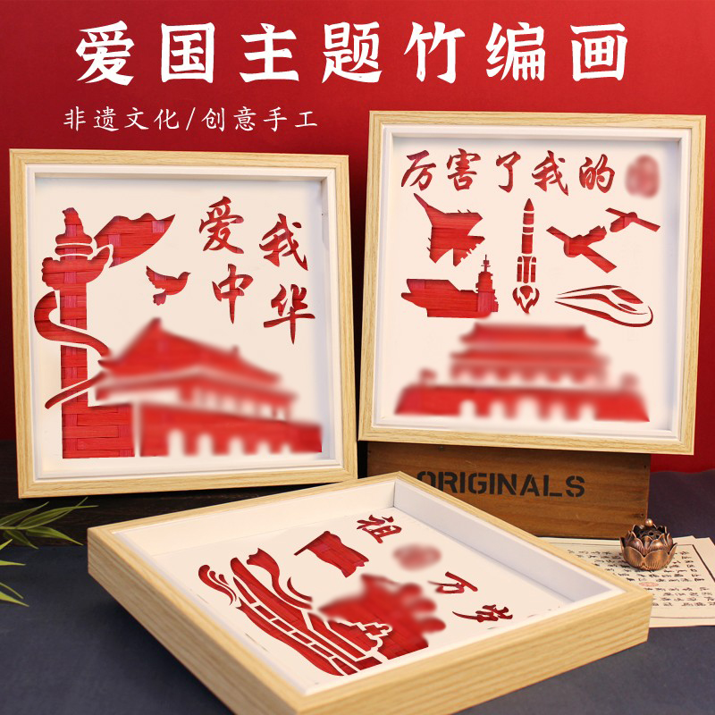 手工diy竹编画中国非遗材料包国庆节红色爱国主题中秋祖国立体