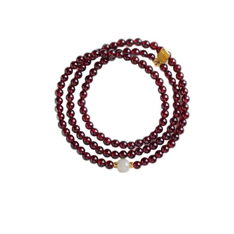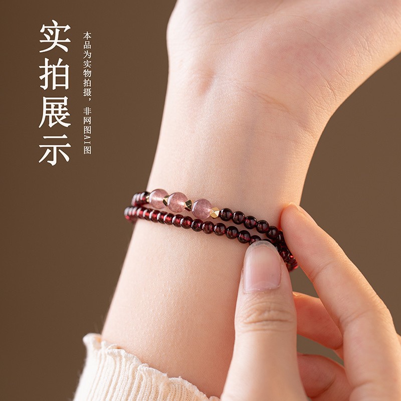 天然酒红石榴石手链和田玉转运珠手饰女双圈手串多圈送闺蜜友礼物