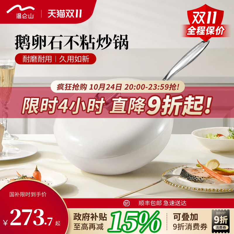 velosan温仑山鹅卵石炒锅陶瓷不粘锅炒菜锅家用电磁炉燃气灶通用