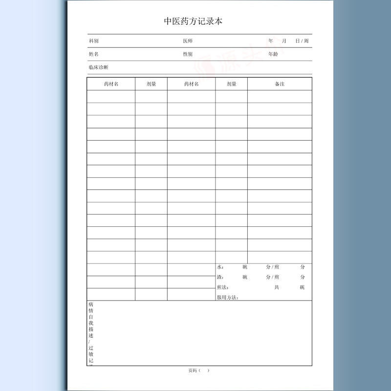 中医药方记录本中yao煎药登记表医案病情医师诊治疗程诊所看病人