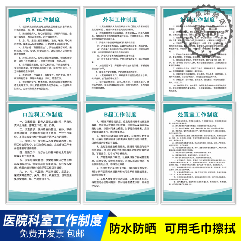 医院科室工作制度内科外科工作管理制度处置室管理制度心肺复苏抢救流程护士医师工作职责宣传标语制度牌定制
