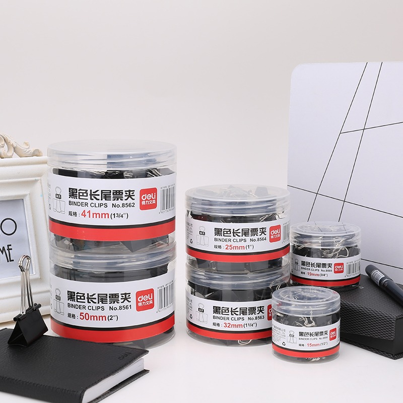 得力长尾夹黑色燕尾夹票夹多功能大号小号金属铁夹整理文件试卷凤尾鱼尾蝴蝶强力书夹固定办公用品文具夹子