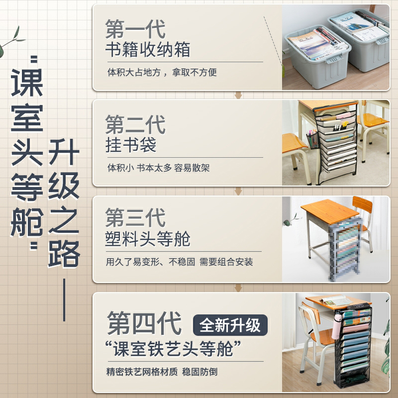 桌面书本收纳可移动桌边书架教室课桌收纳神器桌旁收纳挂书袋置物架学生书桌书立初高中书桌侧立侧边收纳挂架