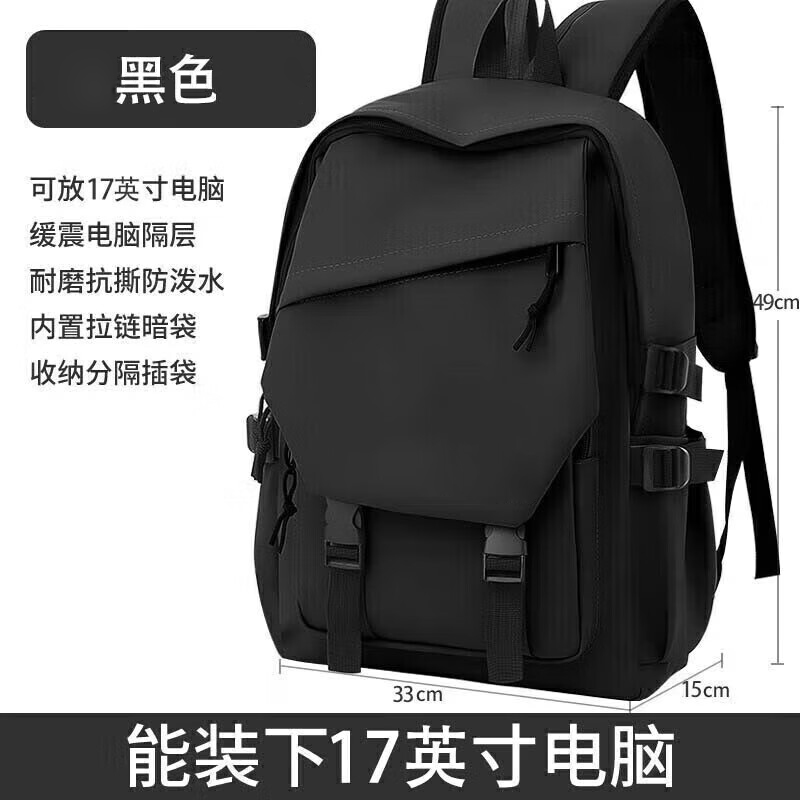 莫黛薇纯色简约双肩包男士外出旅行背包多功能电脑包中学生书包潮