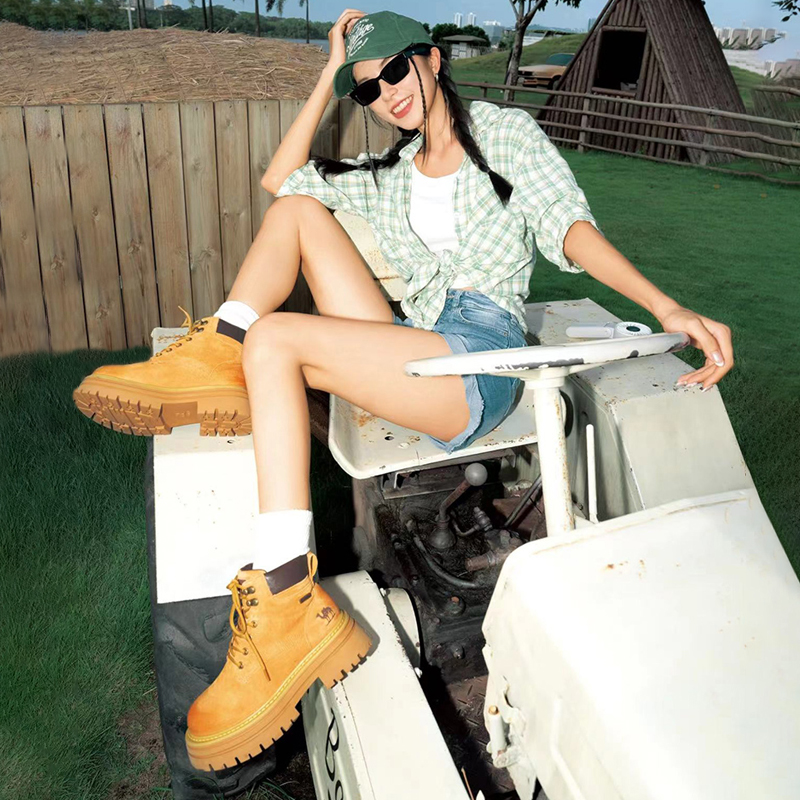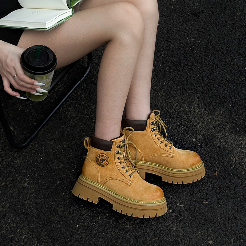 骆驼山越马丁靴女鞋2025秋季新款户外英伦工装登山增高大黄靴子女