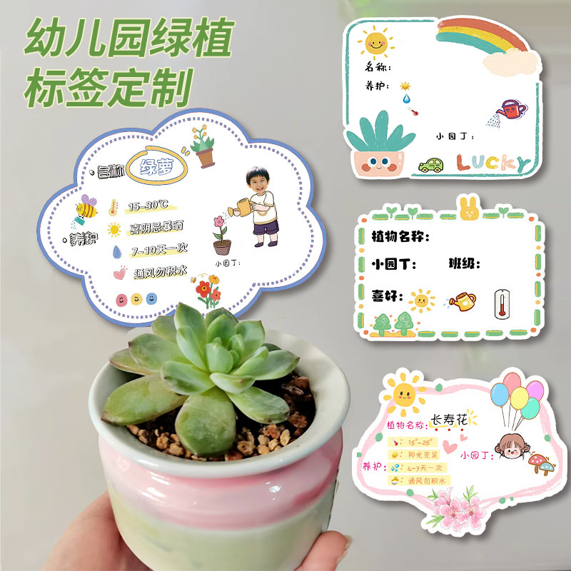 幼儿园植物标签插牌花盆栽绿植可擦写多肉植物介绍牌小防水记录名字绿植养护卡片花卉DIY养护卡片标识牌定制