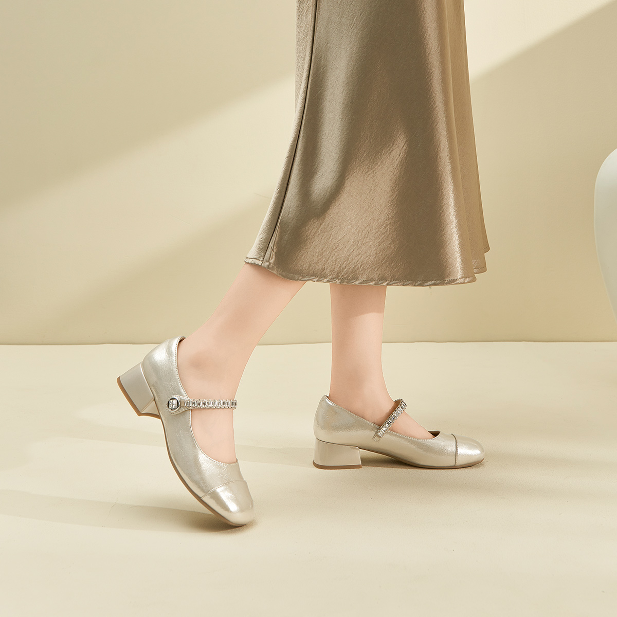 戈美其粗跟玛丽珍鞋女2025夏秋季高级气质小香风配裙子的单鞋子