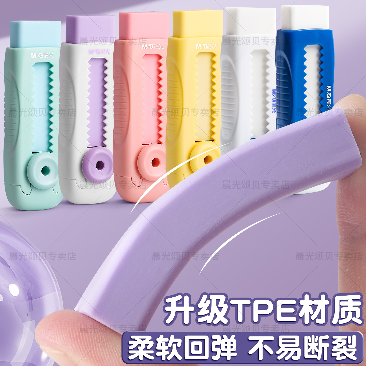 晨光推拉橡皮擦小学生专用推动式铅笔橡皮擦文具用品擦字成线橡皮儿童安全无毒考试学习无屑干净幼儿园橡皮擦