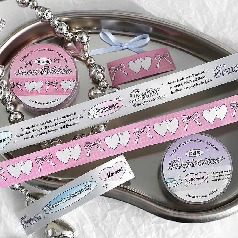 胶带分装|信的恋人雾面银 闪银梦境岛 韩系爱心手帐diy打底素材