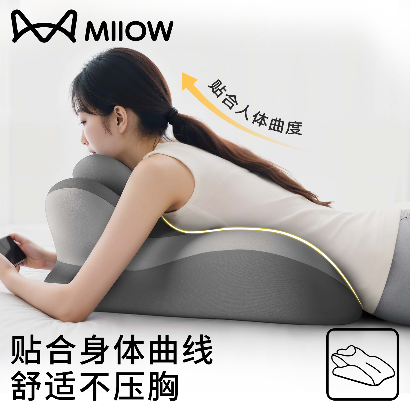猫人趴睡枕床上靠背垫趴着玩手机专用枕头多功能位躺枕靠背垫床头