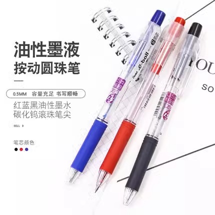 日本Pentel派通BK125圆珠笔油性0.5极细大容量原子笔按动圆珠笔学生用办公按压式圆珠笔书写顺滑黑色旗舰店