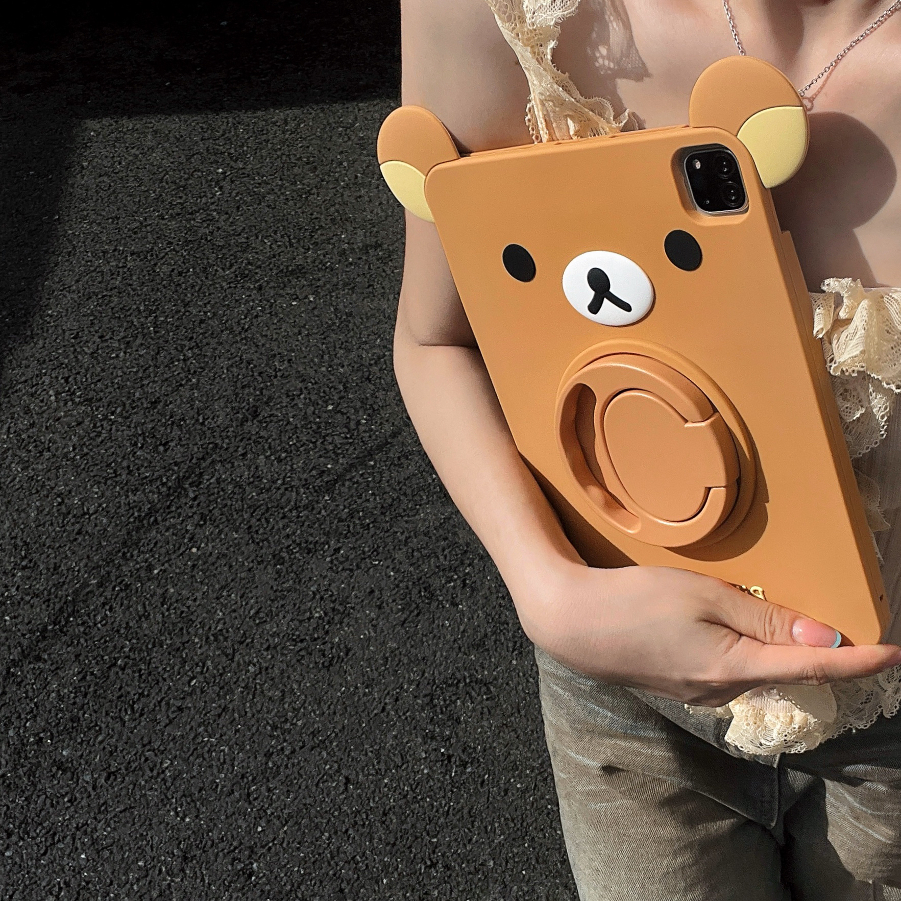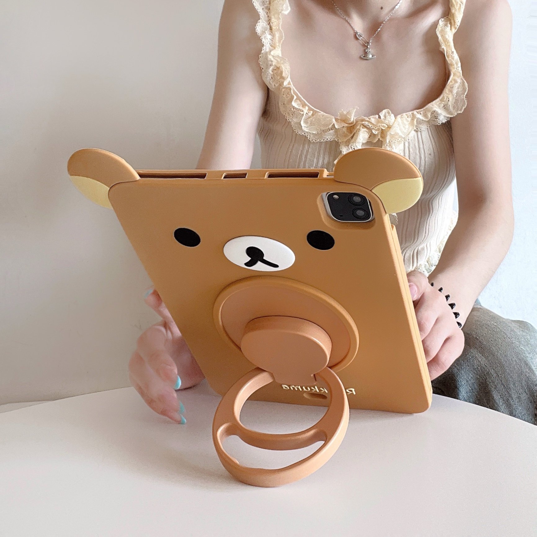 可爱卡通棕色小熊旋转支架适用iPad11保护壳2025新款11寸网红苹果ipad9保护套mini6硅胶ipadair4/5软10平板套