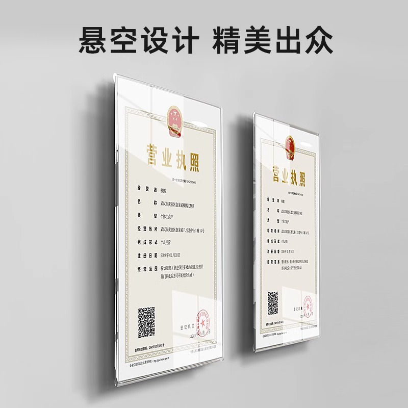 工商营业执照框架a3经营许可证挂墙免打孔专利证书亚克力悬浮相框