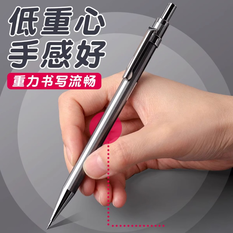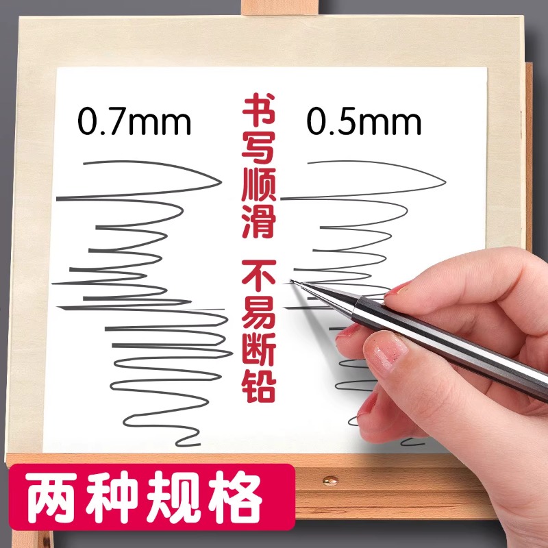 得力金属自动铅笔0.5小学生专用自动笔重手感不断芯高颜值0.7儿童男女生一二年级免削绘画专业按动考试铅笔2b