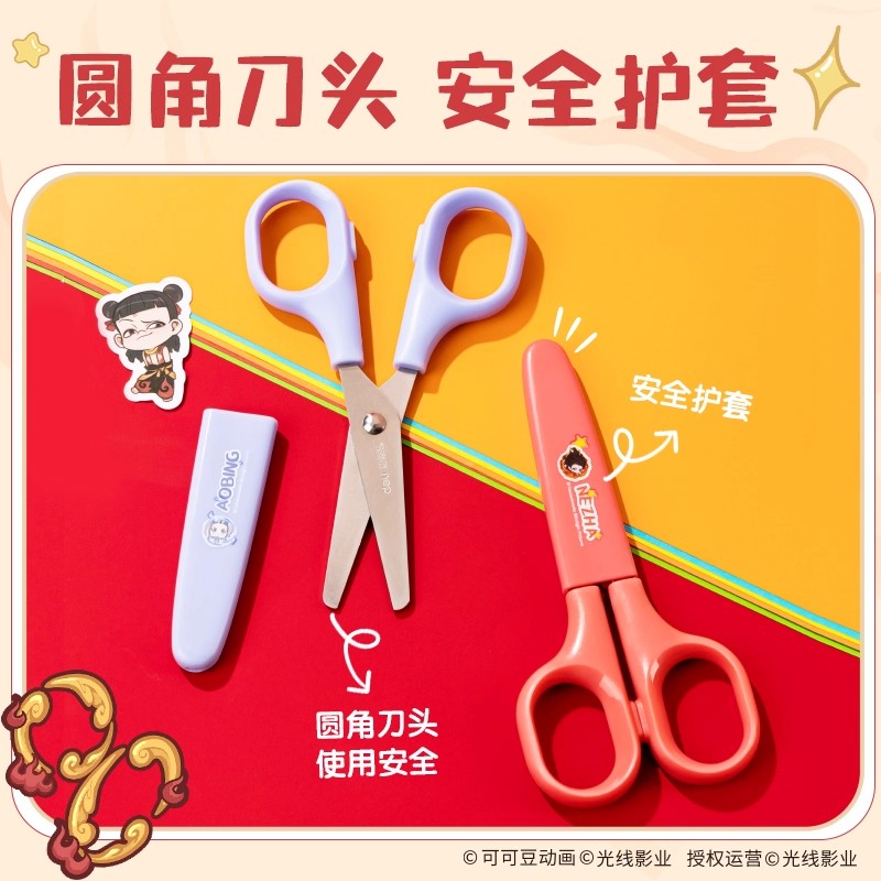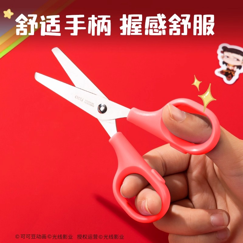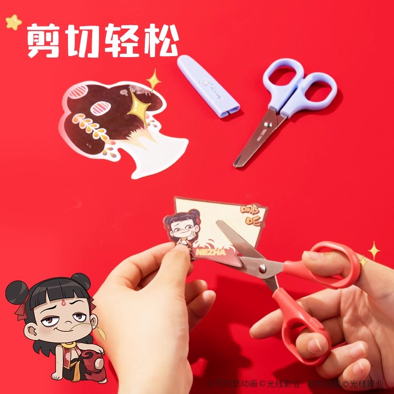 得力联名哪吒儿童剪刀手工安全剪刀小学生diy剪纸折纸剪子不伤手美术专用幼儿园手工专用便携式圆头塑料剪子