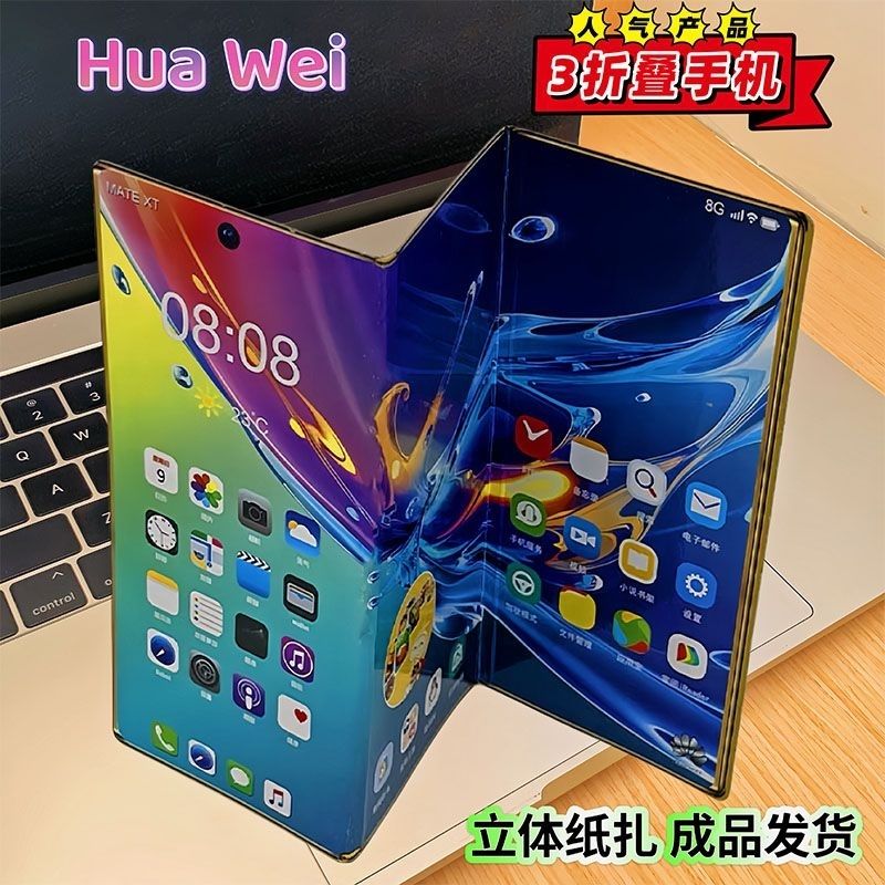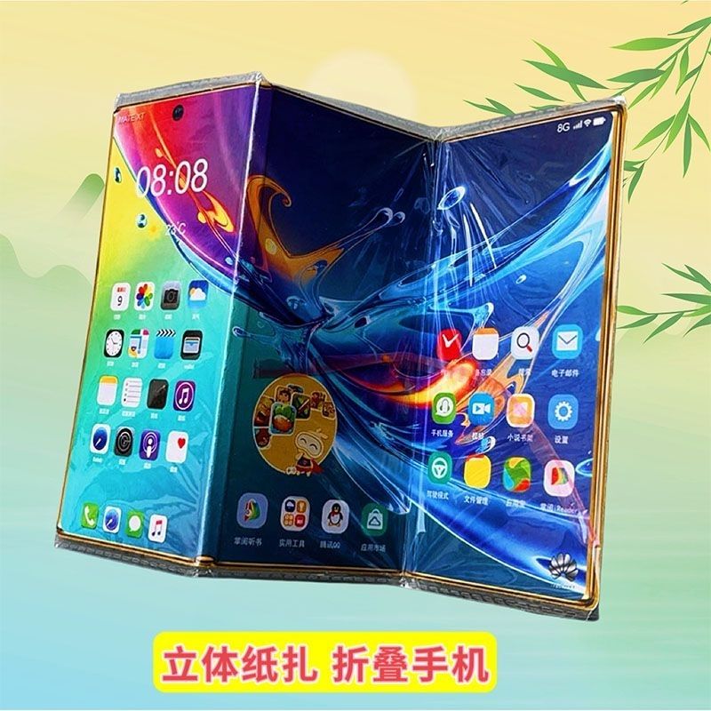 纸扎华为三折叠立体手机祭祀烧纸清明五七忌日上坟周年百天祭祖