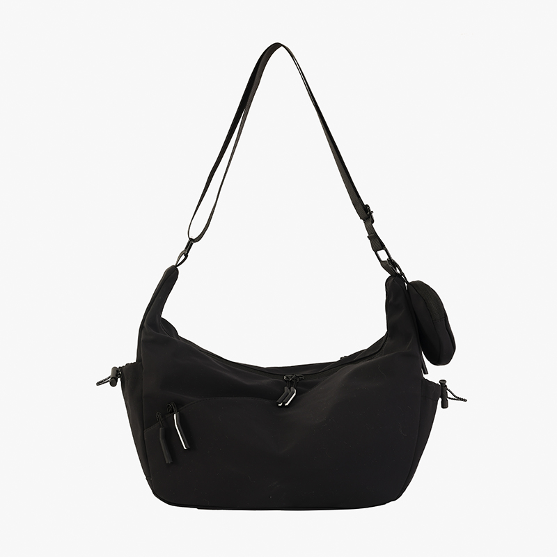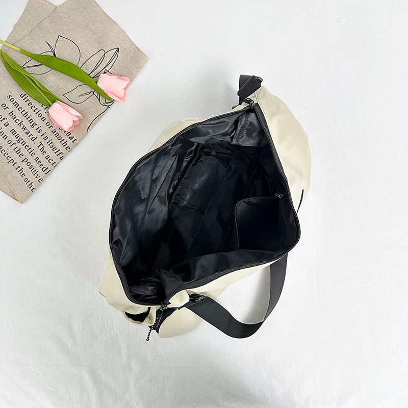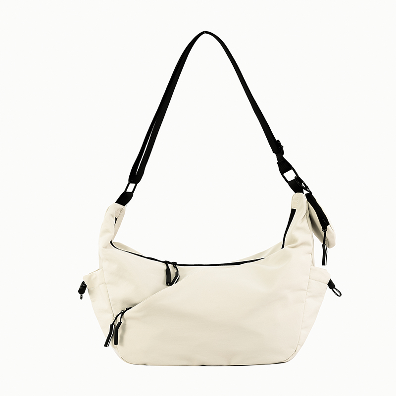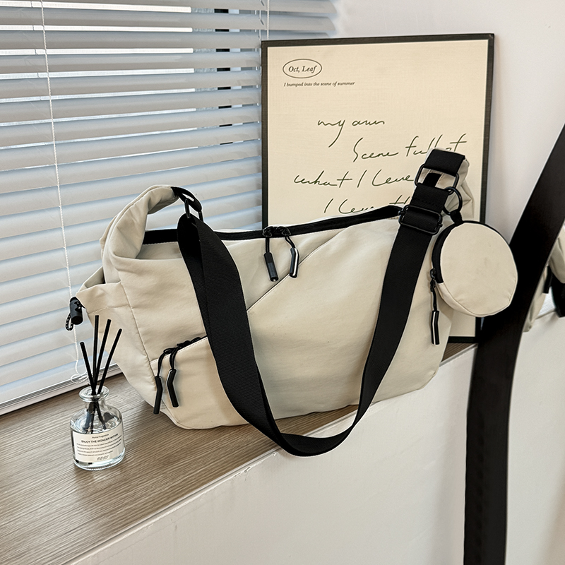 多口袋休闲潮流米白色大容量斜挎包2025新款时尚百搭简约布包女