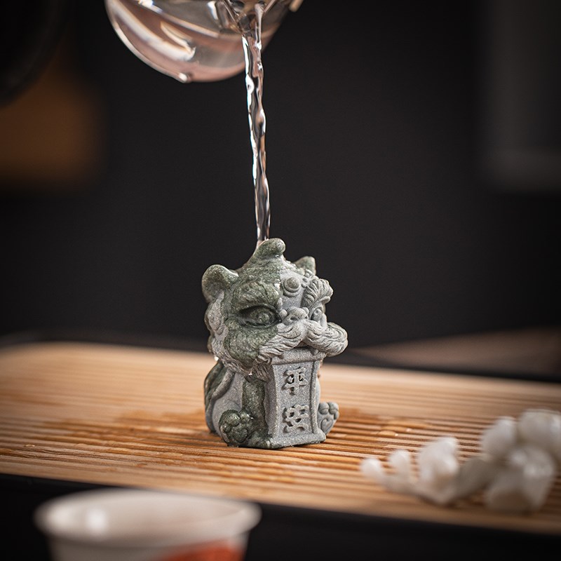 国潮风醒狮平安喜乐一对茶宠摆件石狮子吉祥物招财小礼品桌面装饰