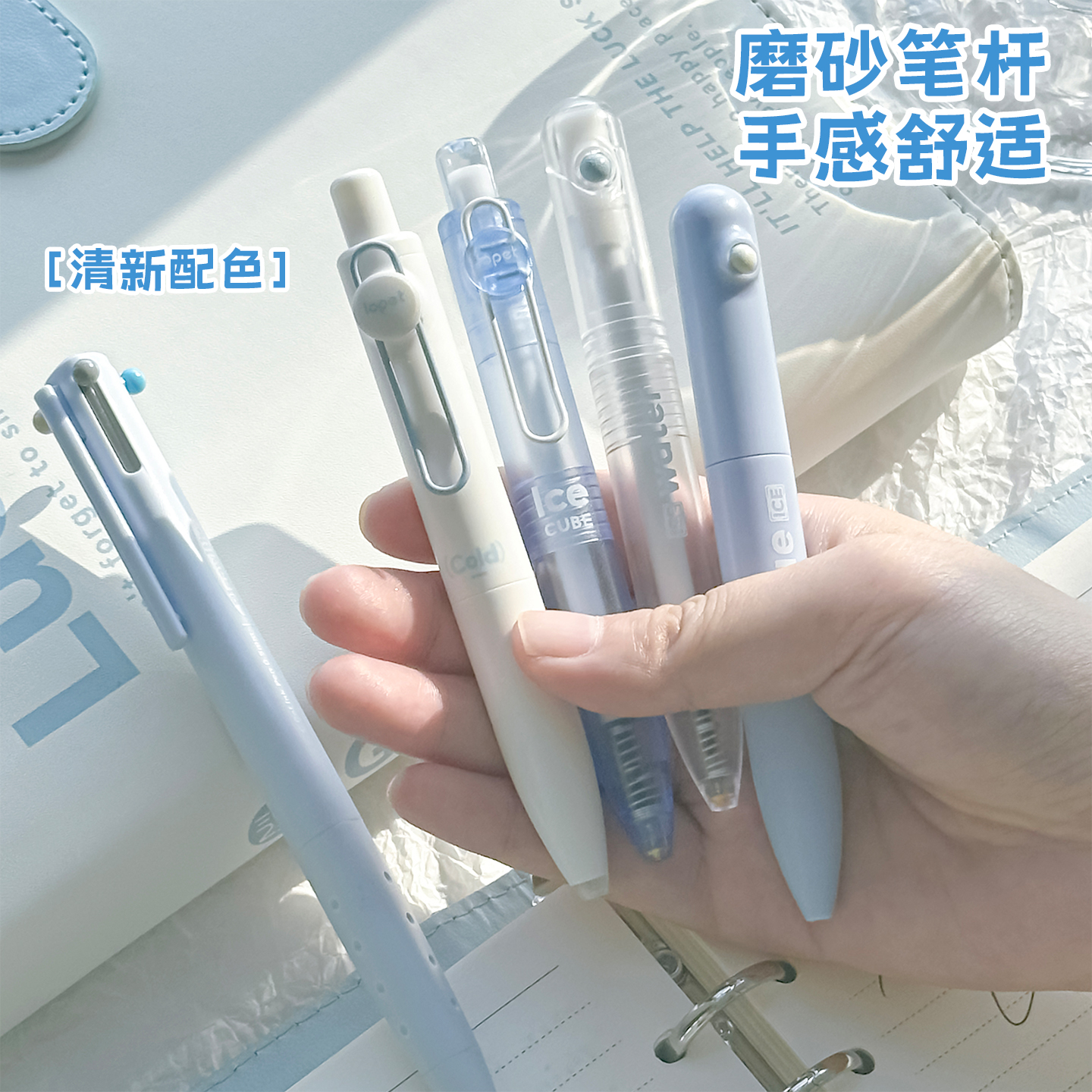 Planwith三色笔按动多色合一中性笔高颜值彩色学生做笔记专用标记笔多功能模块笔粉色红笔蓝笔错题订正记号笔