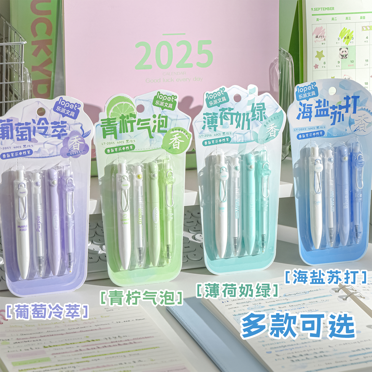 三年二班夏日香氛小胖笔速干顺滑按动中性笔高颜值刷题笔学生专用