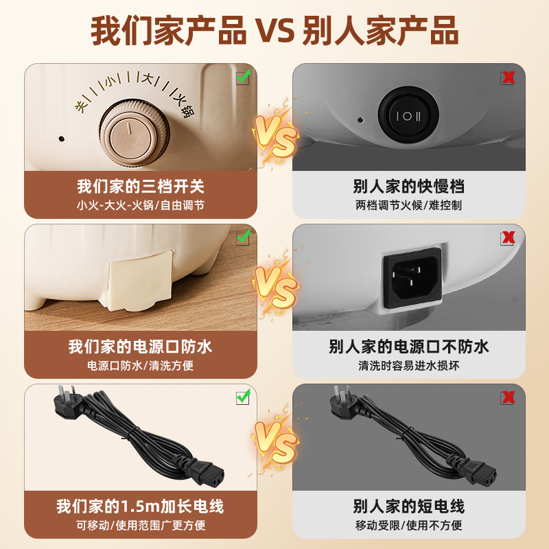 荣事达小电锅电煮锅宿舍家用多功能蒸煮一体电炒锅学生煮面电火锅