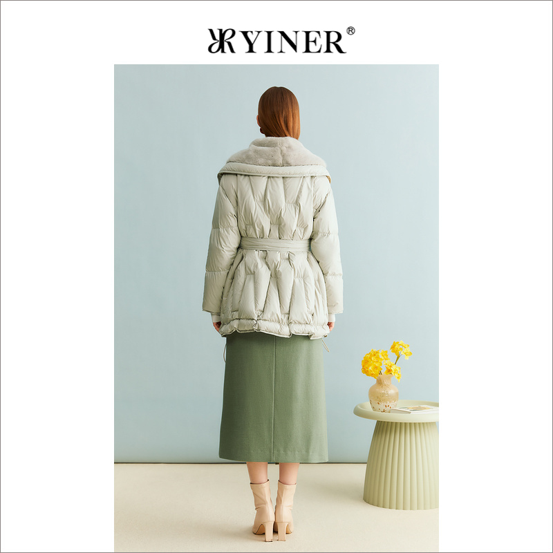 YINER音儿冬季女装不规则法式含绵羊毛设计感系带半身裙